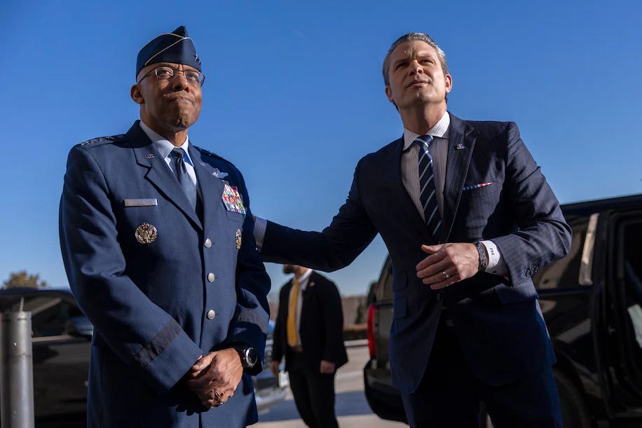 The President fired Joint Chiefs Chairman Gen. CQ Brown Jr., along with several other senior military officials, and the Pentagon announced plans to lay off over 5,000 civilian employees.
