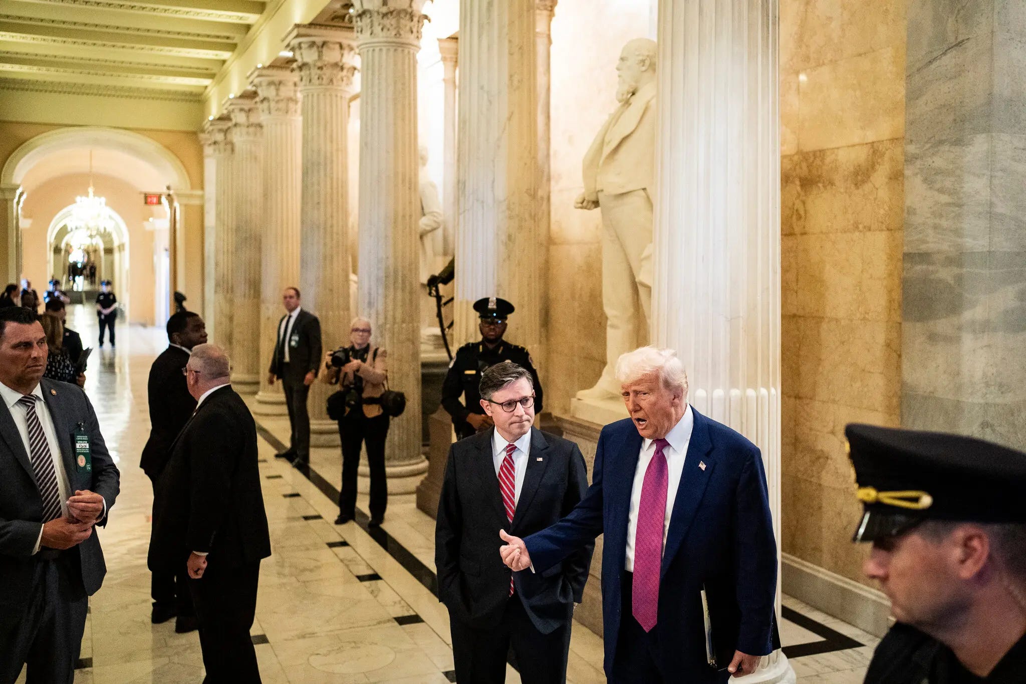 Summary: President Trump visited Capitol Hill to pressure House Republicans into supporting his expansive domestic policy bill, which includes extensions to the 2017 tax cuts, Medicaid reforms, and a SALT deduction cap increase. The bill faces internal GOP resistance from both fiscal conservatives seeking deeper spending cuts and moderates demanding more generous SALT provisions. Trump issued veiled threats to political holdouts while simultaneously urging unity. While some Republicans appeared swayed, others remained unmoved, making the bill’s passage uncertain as Speaker Mike Johnson pushes for a vote before Memorial Day.
